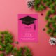 Élégante et sobre, cette faire-part de graduation est moderne et simple, mais sophistiquée, avec son arrière - plan rose chaud clair et son texte blanc crémeux. Le plafond de graduation et l'année sont de véritables feuilles d'or. Votre photo préférée de la grade complète le dos. Annoncez votre réussite avec classe et élégance. Créé par Simply Farmhouse Press.