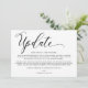 Carte de faire-part de mise à jour mariage simple et moderne. Le design comprend un script de calligraphie "update" et des détails dans les lettres capitales tendance. Parfait pour la mise à jour mariage, faire-part mariage plus petit ou faire-part de réduction.