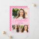 Celebrate the graduate! Modern bold hot pink and pastel pink 3 photos collage graduation with abstract geometric pattern at the back.