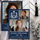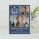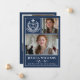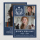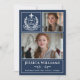 Celebrate your graduate in timeless style with this modern 3-photo Class of 2026 graduation announcement. Featuring a dark academic blue layout, elegant white typography, and a classic white laurel crest “Graduate” emblem, this customizable design beautifully showcases three senior portraits along with the graduate’s name, school, and heartfelt message.