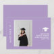 A modern minimal chic 2026 masters graduation announcement card in soft lavender, featuring classic sans serif script and customizable photograph on the front, and a customizable message in an elegant script on the back.