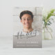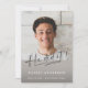 Modern photo script graduation 2026 design with a clean gray layout and stylish typography. Features a large photo and “He did it” script for a memorable Class of 2026 announcement. Perfect for sharing your graduation milestone in a minimal, elegant style.