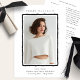 Announce your graduate’s achievement with this elegant and minimalist graduation announcement. Featuring a modern photo layout, clean typography, and black-and-white styling frame, this design is perfect for graduates celebrating the Class of 2026. Fully customizable with your own photo and details. On the back, custom text either for your graduation party or more information. Or delete the text and add another photo.