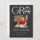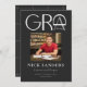 Ces annonces de graduation modernes en noir, blanc et gris de 5" x 7" comportent le mot "Grad" dans un design abstrait. Insérez une de vos photos préférées avec votre nom, votre année de diplôme, votre école, votre diplôme et votre domaine d'intérêt. L'arrière a une ligne gris clair simple sur un arrière - plan noir.