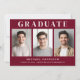 Faire-part de graduation rouge bordeaux moderne avec 3 photos, "Graduate" en élégante typographie blanche et le nom de la grade, l'école et l'année de classe en lettrage blanc propre.