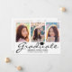 Envoyez à votre famille et à vos amis une carte de faire-part de remise de diplômes personnalisée pour les wow. Ce design modèle simple comprend trois photos que vous pouvez changer à votre propre sur le devant. En dessous de vos photos est le mot "Graduate" dans la typographie manuscrite noire moderne et votre nom et les détails à personnaliser. Le dos de la carte a une 4ème photo avec plus de détails de votre diplôme et des plans futurs pour customiser. Conçu par l'artiste ©Susan Coffey.