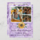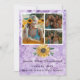 Moderne 4 Collage photo Améthyste violet avec faire-part de graduation de tournesol avec cadre sur votre choix de photo. Le côté arrière contient une autre photo et plus de détails sur votre diplômé.