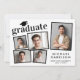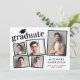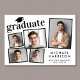 Faire-part moderne de graduation avec un collage photo de 5 images éparpillées dans des cadres, "diplômé" en typographie courageuse et tendance et le nom de la diplômée, l'école et l'année de classe en typographie simple.