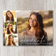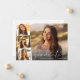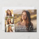 Elégante carte à plat faire-part de graduation avec la photo du diplômé superposée avec une bande de trois plus petites photos de carré et "diplômé" dans un mince script blanc moderne et leur nom et année de classe en simple typographie blanche.