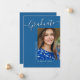 Cette carte moderne élégante mais simple de faire-part de graduation, dispose de texte moderne avec élégant script de calligraphie. La photo des diplômés met en évidence l'avant de la carte tandis que l'arrière de la carte offre des espaces de texte personnalisés pour des informations sur la graduation et le futur voyage. Écriture blanche sur bleu stylisé ou facilement customiser l'arrière - plan à une couleur de votre choix. Pour voir d'autres articles comme celui-ci, visitez mon magasin ici à "www.Zazzle.com/LakeViewCardCo". Merci