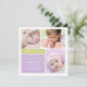 Présentez votre petite fille avec cette carte moderne de faire-part de naissance carré à blocs de couleur. Une bannière vert chartreuse "Introducing" ajoute une touche fraîche de couleur au-dessus d'un bloc de texte lavande avec le nom du bébé en écriture, les détails de naissance et un message des parents fiers. Trois emplacements de photos mettent en valeur votre nouveau-né dans une disposition en collage carré. Le dos présente un accent vert coordonné. Tout le texte, les couleurs et les photos sont entièrement personnalisables.