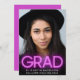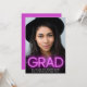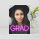 Faire-part de graduation amusante et branchée avec "GRAD" en typographie néon rose vif superposant la photo du diplômé. Personnalisez avec son nom, son année de classe et son école.
