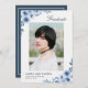 fêtez votre graduation avec ce design floral avec une belle photo et des fleurs bleu aquarelle.