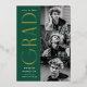 Célébrez la grande réussite de votre diplômé avec cette élégante faire-part de remise des diplômes qui présente trois de leurs photos dans une mise en page verticale sur le côté droit du design. "Grad" est élégamment présenté dans de véritables feuilles d'or art déco en lettrage contre un arrière - plan vert audacieux, ajoutant une touche de sophistication à votre faire-part. Personnalisez cette carte de graduation photo moderne en ajoutant le nom du diplômé, l’année de diplôme et le nom de l’école. L'envers présente un motif pivotant géométrique vert et blanc éclatant pour une finition attrayante. Parfait pour les diplômés du secondaire et du collégial, ce design est une façon mémorable de partager les nouvelles passionnantes!