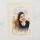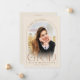 Cette faire-part de graduation en arc minimaliste beige présente un cadre en arc délicat, 2 modèles photo et une élégante typographie moderne.