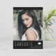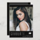 Cartes de faire-part de graduation élégantes, avec texte moderne avec un look élégant et professionnel. La photo des diplômés à l'avant de la carte est rehaussée par de minces cadres translucides en haut et en bas, tandis que l'arrière de la carte offre des espaces de texte personnalisés pour des informations sur la graduation et le futur voyage. Les Arrière - plans sont noirs avec du texte blanc à l'avant et des nuances de gris et de noir à l'arrière. Pour voir d'autres articles comme celui-ci, visitez mon magasin ici à "www.Zazzle.com/LakeViewCardCo". Merci