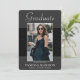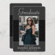 Belle 1 photo 5"x7", cartes faire-part de graduation. Doté d'un texte moderne et d'un script élégant. La photo des finissants est bordée d'une bordure blanche et d'une garniture ondulée décorative. Le design est complété par un arrière - plan dans les tons gris platine foncé et noir royal. Le dos de la carte offre un espace de texte personnalisé pour ce diplômé spécial. Pour voir d'autres articles comme celui-ci, visitez mon magasin ici à "www.Zazzle.com/LakeViewCardCo". Merci