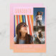 Faire-part de graduation pour votre classe de fin d'études secondaires de 2022 avec un beau soleil couchant et un design sombre rose et trois de ses photos senior. Customisez le côté avant de la carte avec sa photo, son nom et le nom de l'école. Cette faire-part de graduation revient à coordonner le design à l'ombre sur le dos.