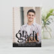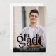 GRAD Tassel 2 Photos Black Overlay Faire-part. Annoncez l'exploit de votre diplômé avec ce faire-part photo avec 2 images (une de chaque côté) et un design typographique moderne pour le titre GRAD accentué avec une année de classe et de goût sur le devant dans votre choix de couleurs graphiques et textuelles (en noir) sur une photo noire ombragée en bas. L'arrière offre un endroit pour inclure des informations supplémentaires sur votre diplômé. ASSISTANCE : Pour obtenir de l'aide sur la modification ou la personnalisation de la conception, le changement de couleur, le transfert de la conception vers un autre produit ou si vous souhaitez coordonner des éléments, contactez le concepteur AVANT DE COMMANDER via l'onglet MESSAGE Conversation Zazzle ou envoyez un courriel à makeitaboutyoustore@gmail.com.
