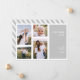 Carte de vacances multi photo moderne, graphique minimaliste de noël. Graphic design moderne 4 photo avec un message de joie de choix positif et fond rayé.