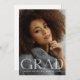 Cartes de faire-part de graduation "Photo" modernes et audacieuses, avec éléments de design de blanc transparent, de style de mode moderne lisant "GRAD", avec typographie minimaliste. La photo du diplômé sur le devant de la carte met en évidence toute la surface. Le dos de la carte offre des espaces de texte personnalisés pour des informations sur votre graduation et votre futur voyage. Idéal pour les personnes âgées du secondaire, du collège et de l'université.