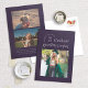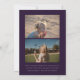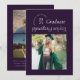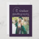 Cette faire-part moderne de graduation comporte une photographie carré unique sur une arrière - plan violette foncée et une typographie tendance avec le nom de l'école et l'année de graduation donnant l'impression d'un timbre et le nom des diplômés mis en évidence de manière très moderne et tendance, reflétant à l'envers des autres informations de graduation. Le dos de la faire-part de remise de diplômes comprend deux photographies, parfaites pour inclure une photo d'enfance, et un endroit pour un message plus long, idéal pour mettre en évidence les réalisations du diplômé ou les plans futurs.