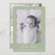 Cette carte minimale moderne élégante Sage vert Genre Neutre Nouveau-né Faire-part de naissance bébé est tendance et élégant. La carte entièrement personnalisable comporte une photo sur le devant avec le nom de votre bébé, les statistiques de naissance et les noms de ses parents. Le dos montre un collage de trois photos. Parfait pour partager votre joie, ce design minimaliste de coquette est idéal pour les annonces de bébé sans sexe. Célébrez votre nouveau-né avec cette carte faire-part simple et élégante.