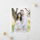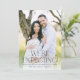 Annoncez vos nouvelles excitantes avec ce faire-part photo moderne de grossesse avec votre photo verticale à fond de sang et une superposition en noir gras qui dit "Nous nous attendons!" Ce design sans distinction de genre est facile à personnaliser avec la date d'échéance de votre bébé et vos noms sur le devant, créant une façon élégante et élégante de partager votre joie. Le dos comprend de l'espace pour une autre photo et votre message personnalisé, ce qui en fait le choix parfait pour une carte unique et chaleureuse de révélation de grossesse.