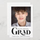 Annoncez le succès de votre diplômé à sa famille et à ses amis avec ce faire-part moderne de remise de diplômes avec sa photo préférée, "GRAD" écrite en caractères gras et tendance. Ajoutez facilement son nom, son école et son année de classe.