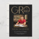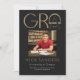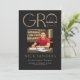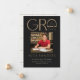 Ces annonces de graduation modernes en noir et or 5" x 7" comportent le mot "Grad" dans un design abstrait. Insérez une de vos photos préférées avec votre nom, votre année de diplôme, votre école, votre diplôme et votre domaine d'intérêt. Le dos a un design simple en noir et or sur un arrière - plan en ivoire.