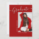 Cette carte moderne élégante mais simple de faire-part de graduation, dispose de texte moderne avec élégant script de calligraphie. La photo des diplômés met en évidence l'avant de la carte tandis que l'arrière de la carte offre des espaces de texte personnalisés pour des informations sur la graduation et le futur voyage. Écriture blanche sur rouge stylisé ou customiser facilement l'arrière - plan à une couleur de votre choix. Pour voir d'autres articles comme celui-ci, visitez mon magasin ici à "www.Zazzle.com/LakeViewCardCo". Merci
