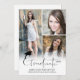 Annoncez la réussite de votre baccalauréat ou de votre diplômé de l'université avec cette typographie moderne et simple à la main faire-part de design de titre GRADUATE avec 4 photos (3 sur le devant et 1 sur le dos) avec capuchon de graduation noir ou accent mortier. Le verso offre un champ de texte pour des informations sur les réalisations, les activités et les plans futurs de votre diplômé. ASSISTANCE : Pour obtenir de l'aide sur la modification/personnalisation de la conception, le transfert de la conception à un autre produit ou si vous souhaitez coordonner des éléments, contactez le concepteur AVANT DE COMMANDER via l'onglet MESSAGE Conversation Zazzle ou envoyez un courriel à makeitaboutyoustore@gmail.com.