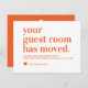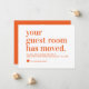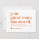 Your Guest Room Has Moved Moving Faire-part avec un script moderne et une typographie de police et un coeur. Les couleurs peuvent être changées facilement en cliquant sur personnaliser, puis cliquez pour customiser plus loin pour voir notre sélecteur de couleurs. Contactez notre magasin si vous avez besoin d'aide.