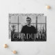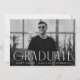 Faire-part de graduation simple avec la photo horizontale du diplômé avec "Graduate" affichée en lettres blanches et modernes art déco. Personnalisez l'avant du faire-part de remise de diplômes en photo unique en ajoutant le nom du diplômé, son école et son année d'études. La faire-part s'inverse pour afficher une conception géométrique tourbillon noir et blanc.