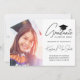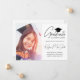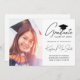 Envoyez à votre famille et à vos amis une carte personnalisée de diplôme d'études supérieures en photo pour les wow. Ce design modèle présente votre photo personnalisée à gauche et à droite un casquette blanc sur le mot "Graduate" écrit dans une police blanche. Personnalisez votre classe/année, nom, diplôme et autres détails de cérémonie sur un arrière - plan blanc classique. Conçu par Susan Coffey.