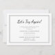 Annoncez à votre famille un changement de date de votre mariage avec ce carte photo élégant. Le design comprend un arrière - plan blanc propre avec une bordure noire et l'accueil "Essayons de nouveau !" Le texte personnalisé vous permet d'ajouter les noms de la mariée et du marié, ainsi qu'une nouvelle date de mariage et une photo à l'arrière.