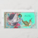 Design floral élégant et amusant de style vintage avec un bébé et cigogne volant parmi les belles roses, roses rouges, fleurs de printemps bleu turquoise et une pierre à gemme 3D vibrante et brillante par Bulgan Lumini (c).