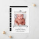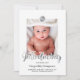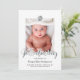 Carte photo moderne et tendance pour présenter le dernier membre de votre famille, en noir, blanc et feuille d'argent, une photo du bébé, son monogramme et un lettrage à la main.