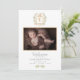 Cette faire-part douce pour bébé présente une crête monogramme avec un chariot de bébé dans une palette de couleurs neutres. Présentez votre bébé au monde avec une photo et tous les détails de la journée spéciale de votre nouveau bébé.