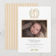Cette faire-part douce pour bébé présente une crête monogramme avec un chariot de bébé dans une palette de couleurs neutres. Présentez votre bébé au monde avec une photo et tous les détails de la journée spéciale de votre nouveau bébé.