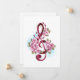 Pink treble clef with delicate, detailed pink Japanese cherry blossoms against white background painted over with light blue paint Blooming pink sakura.
