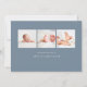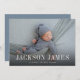 Un design faire-part de naissance simple et intemporel avec une photo horizontale à fond de saignement ou orientée paysage avec le nom du bébé et les stats de naissance superposés le long du fond en lettres blanches classiques. Ajoutez trois photos de carré supplémentaires à l'arrière, ainsi qu'un message personnel.