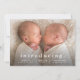 Un Faire-part de naissance photo simple minimal jumeau de type moderne et une grande photo horizontale à l'avant. Le dos a 2 photos avec un en-tête grand nom et message personnel de la famille. Cliquez sur le bouton Modifier pour customiser cette conception avec vos photos et détails.