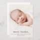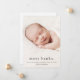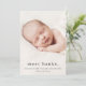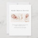 Un faire-part de naissance photo à budget doux avec un nom moderne et une photo de portrait vertical à fond saigné. Le dos a 2 photos supplémentaires taches un grand en-tête de nom complet et message personnel de la famille.