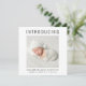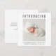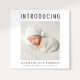 Un élégant faire-part de naissance carré minimaliste pour présenter votre nouveau-né à des amis et à la famille avec "Introduction" sur le dessus en gros lettrage, leur photo et leur nom, date de naissance et statistiques de naissance dans la simple typographie moderne. Au verso, ajoutez votre message personnalisé.