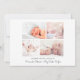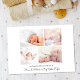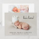 Faire-part de naissance moderne minimale pour annoncer l'arrivée de votre nouveau bébé à la famille et aux amis. La photo de votre nouveau-né remplit le devant et est superposée de "elle est ici !" "il est ici !" ou "Je suis ici !" dans un script contemporain (vous pouvez déplacer ce texte dans une autre zone de la carte en fonction de votre photo en sélectionnant "modifier dans l'outil de design"). Ajoutez son nom, sa date d'arrivée et ses statistiques de naissance. Au contraire, ajoutez quatre photos de famille supplémentaires, un message "accueilli par" et les prénoms des parents et des frères et soeurs.