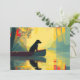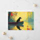 A black Labrador sitting peacefully in a canoe, surrounded by a warm, glowing landscape.