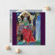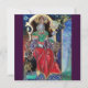 Coloré, vibrant, peinture contemporaine en or, bleu, rouge, vert, couleurs marron. Un mystérieux sorcier hypnotique avec d'élégants costumes de velours rouge tenant une sphère magique assise sur un trône gothique avec des gargouilles et une chouette. Ambient est surréaliste, fantastique, alchimique où vous voyez un bouchon boire d'une tasse, un moine tempéré volant sur une grenouille, bulles transparentes, paysages d'imaginaire avec feu d'enfer, ciel bleu cosmique avec étoiles, montagnes du ciel, arbres.Egg Tempera sur panneau en bois avec feuille d'or. 1989, Miniature Fabriquée avec des techniques picturales de 1300 par Alessandro Lumini (c) C'est aussi un beau design d'imaginaire pour Noël, Fête, Anniversaire, Jour de la Saint-Sylvestre, Mardi Gras et salutations carnavales.
