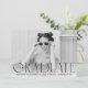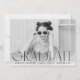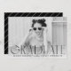 Annoncez votre diplôme avec style grâce à nos annonces de graduation photo modernes. Les annonces de graduation simples présentent votre photo horizontale préférée avec "Graduate" affichée dans une superposition de texte noir moderne. Personnalisez le devant des annonces tendance de remise de diplômes en ajoutant le nom du diplômé, le nom de l'école et l'année de fin d'études. La carte s'inverse pour afficher un motif rayé noir et blanc.
