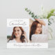 Annoncez les réalisations et les plans de votre diplômé avec ce faire-part de graduation photo moderne et élégant. L'avant du faire-part affiche 2 photos - 1 photo horizontale et 1 photo verticale. "Graduate" s'affiche dans un script noir à la mode écrit à la main. Personnalisez le faire-part avec l'année de diplôme et le nom du diplômé. Le faire-part inverse pour afficher une photo supplémentaire avec votre texte personnalisé en lettres noires. Ce faire-part de 3 diplômes photo est parfait pour les baccalauréat ou collégial.